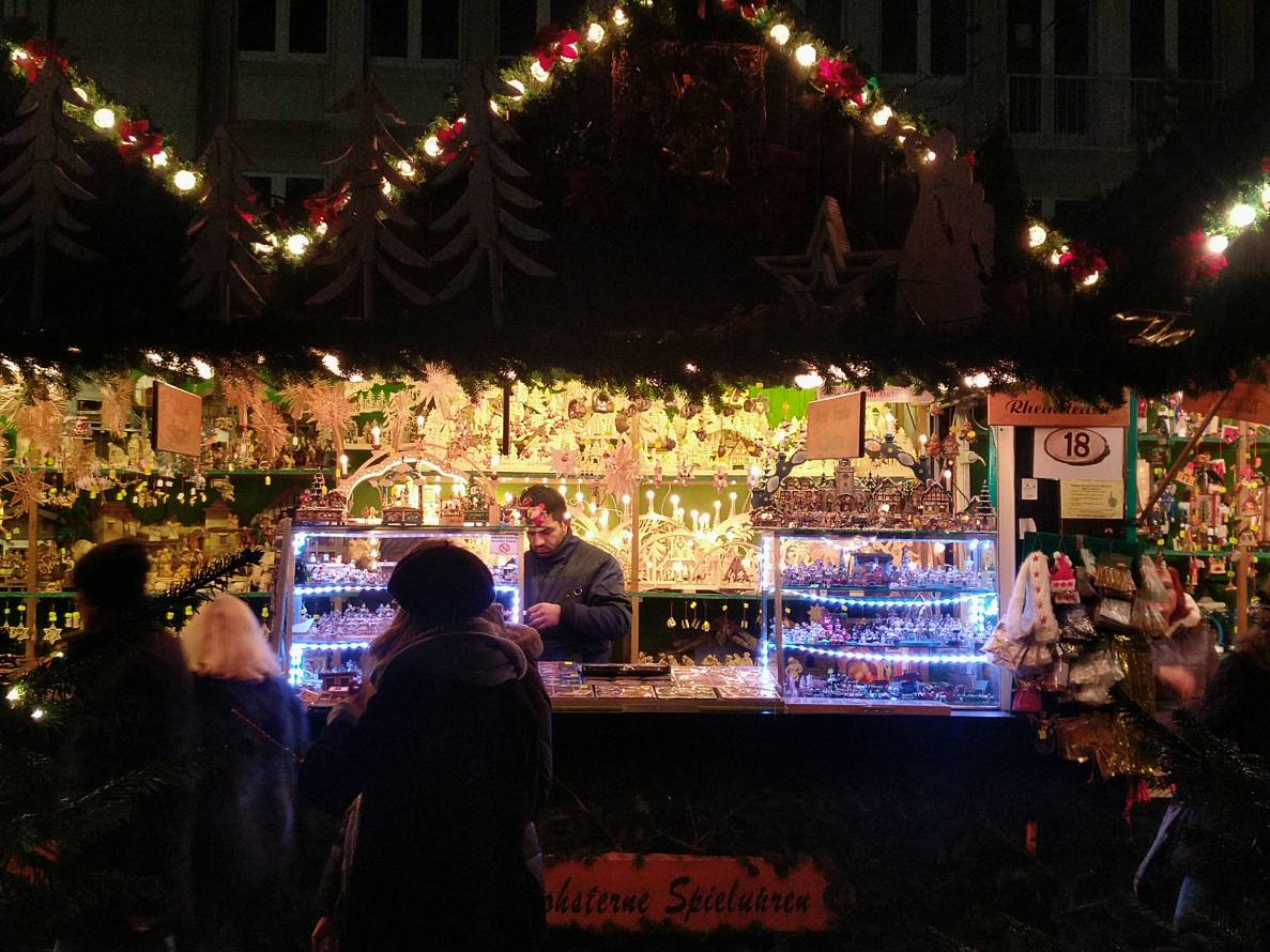 這樣講大家就自然想到逛聖誕市集嘍。聖誕市集Christkindlmarkt/Weihnachtsmarkt起源於中世紀晚期的德國和奧地利,距今已有七八百年的歷史。各地的聖誕市集從11月開始搭建,11月底12月初陸續開張營業,一直到12月24日聖誕前夜,甚至有個別城市的聖誕市集會一直開到新年。